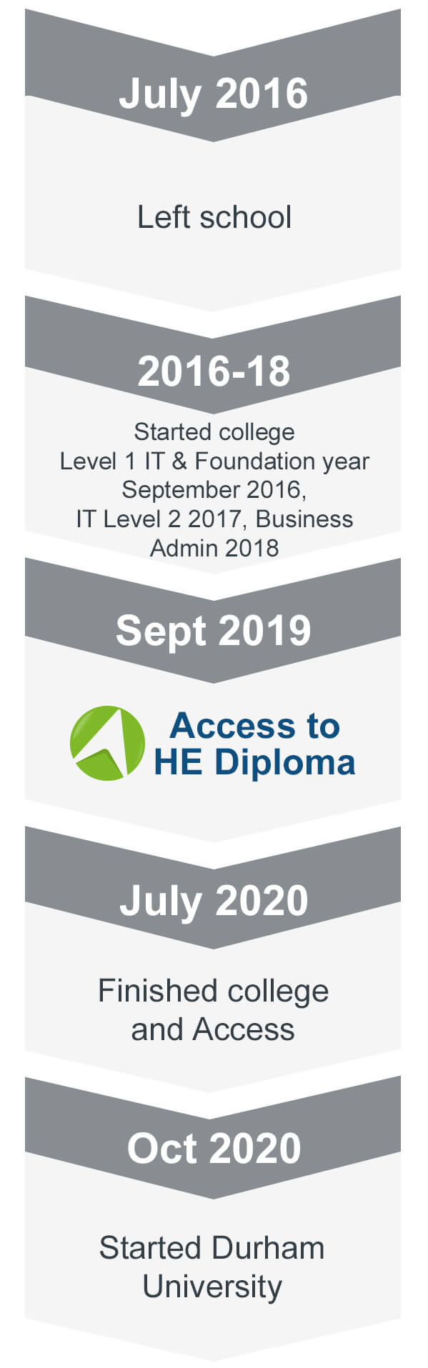 I received offers from all the universities I applied to and accepted a place at Durham. It was good to see that Access to HE really does put you on a level footing with students who have taken other qualifications.